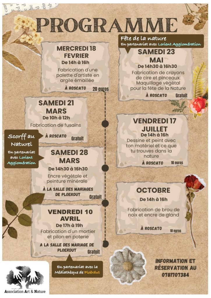 L’Association Art et Nature est née en 2013 à ploerdut de la volonté de Morwenna calvez et moi-même de partager nos passions et savoir-faire artistiques et sensibiliser à l’environnement.